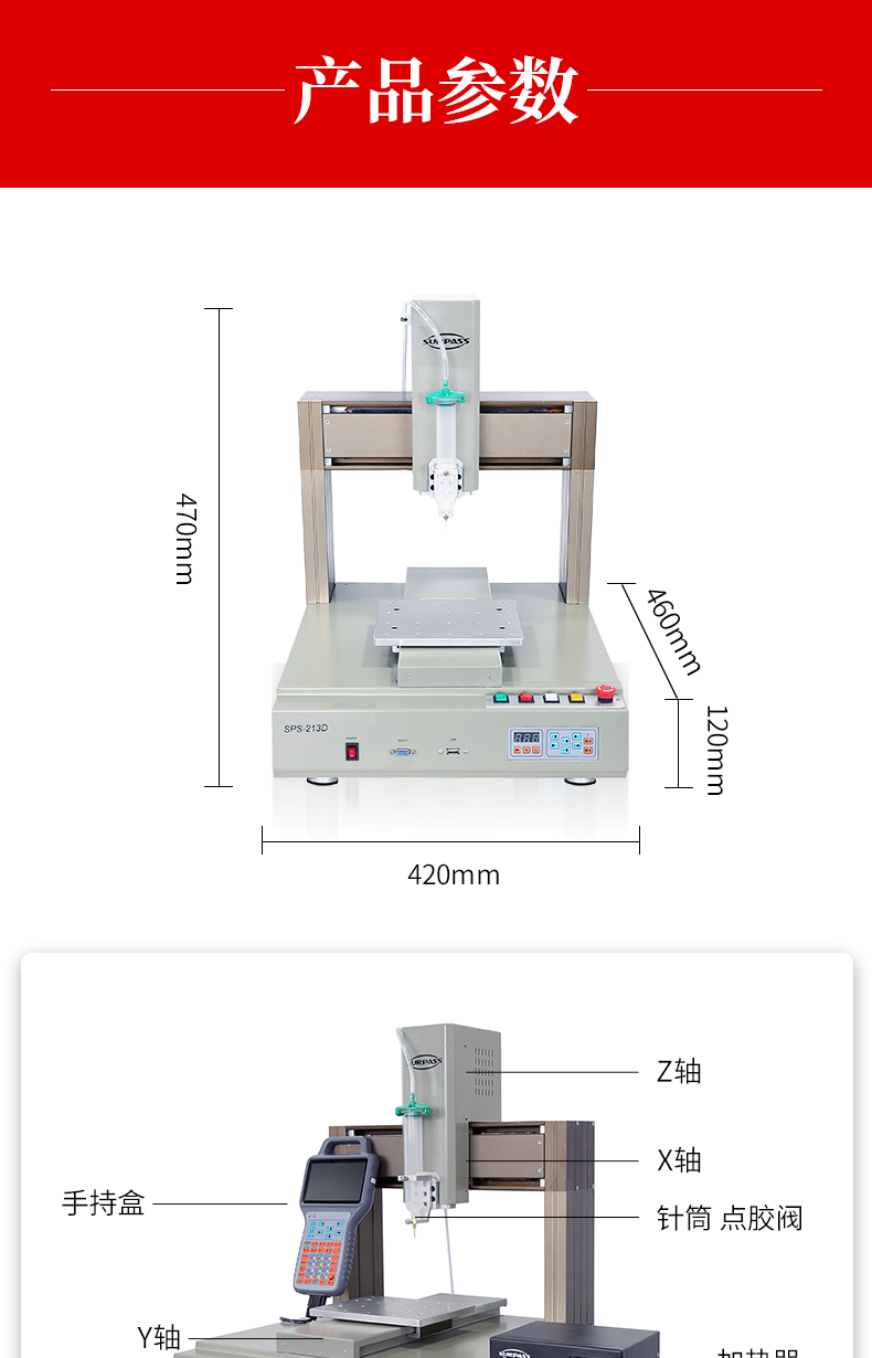 • 三軸桌面式硅膠密封膠點膠機SPS-413D