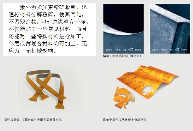 采用UV紫外激光作為工具,冷加工方式,結(jié)構(gòu)緊湊、易安裝、操作簡(jiǎn)單,維護(hù)方便。幾乎可以加工所有材料,功能強(qiáng)大,精密控制及加工效率極高,是開發(fā)創(chuàng)新產(chǎn)品的好幫手。