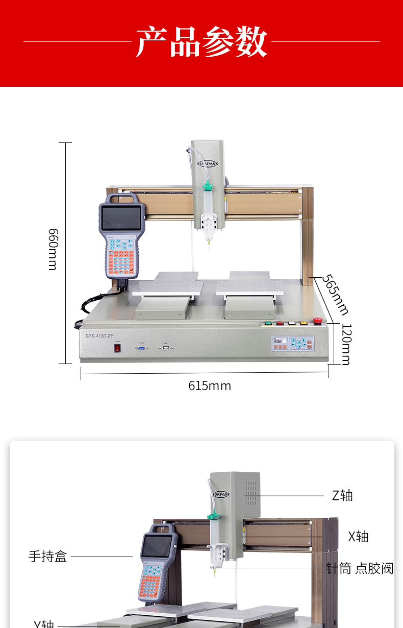 4. 機臺上帶有對針頭的控制按鍵,不需外接教導器,比同類產品調試 更加方便。