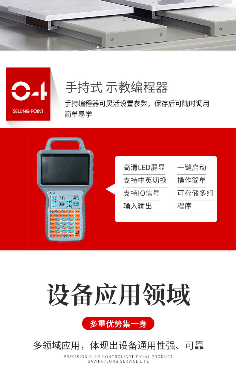 1. 可替代人工的特定點膠作業,實現機械化生產。